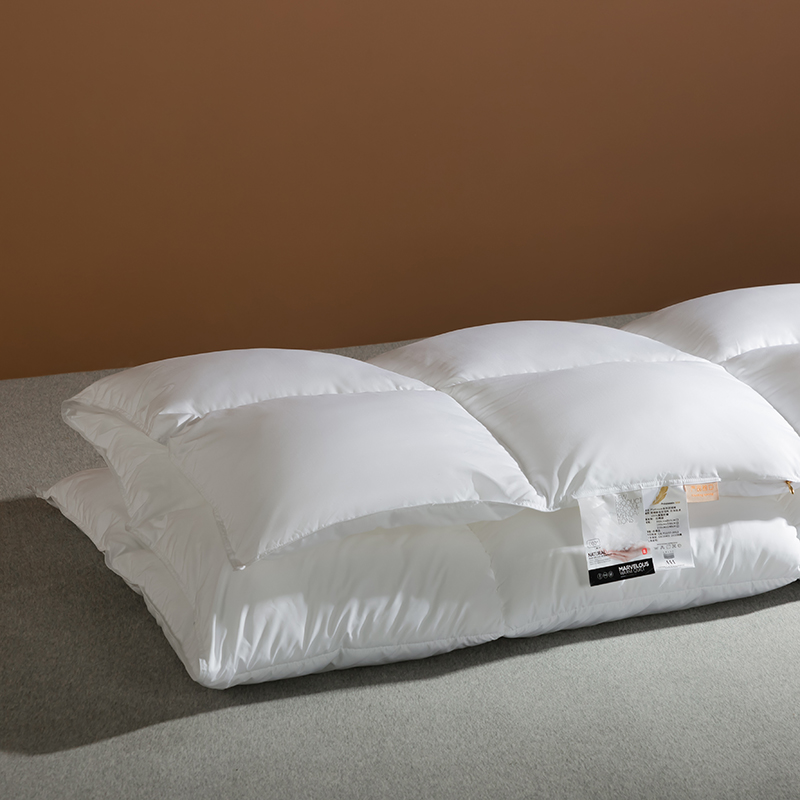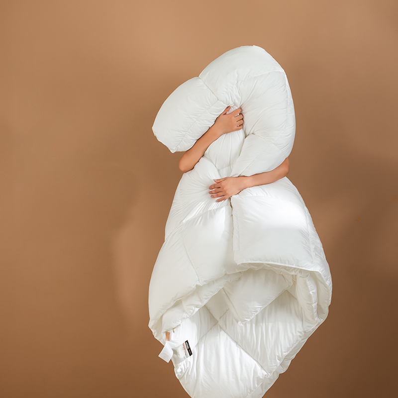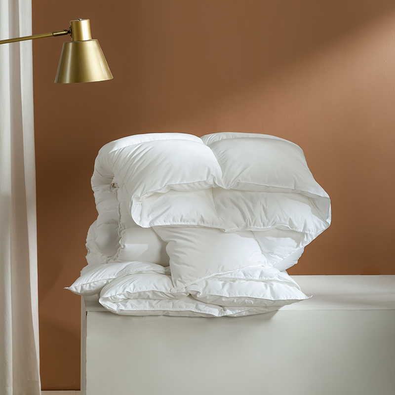 Această plapumă este umplută cu puf de gâscă de înaltă calitate, având ciorchini mari, plini, pentru o mansardă și o rezistență excepționale. Structura naturală tridimensională a pufului de gâscă captează aerul, creând un strat de izolație eficient, asigurând o căldură excepțională în nopțile reci de iarnă, menținând în același timp o senzație de ușoară, necompresivă. Această pilota este realizată din bumbac 100%, țesut cu precizie, cu un număr mare (TC) de la 233 la 300, cu specificații și mai mari disponibile la cerere. Țesătura de bumbac este în mod natural prietenoasă cu pielea și foarte respirabilă, elimină eficient umezeala și previne înfundarea, menținându-te uscat și confortabil în timpul somnului. Tehnica noastră clasică de matlasare în carouri fixează în siguranță puful de gâscă în fiecare grilă mică, împiedicând puful să se miște sau să se acumuleze. Acest lucru asigură o grosime uniformă și o căldură de lungă durată, făcând această pilota atât plăcută din punct de vedere estetic, cât și extrem de practică.